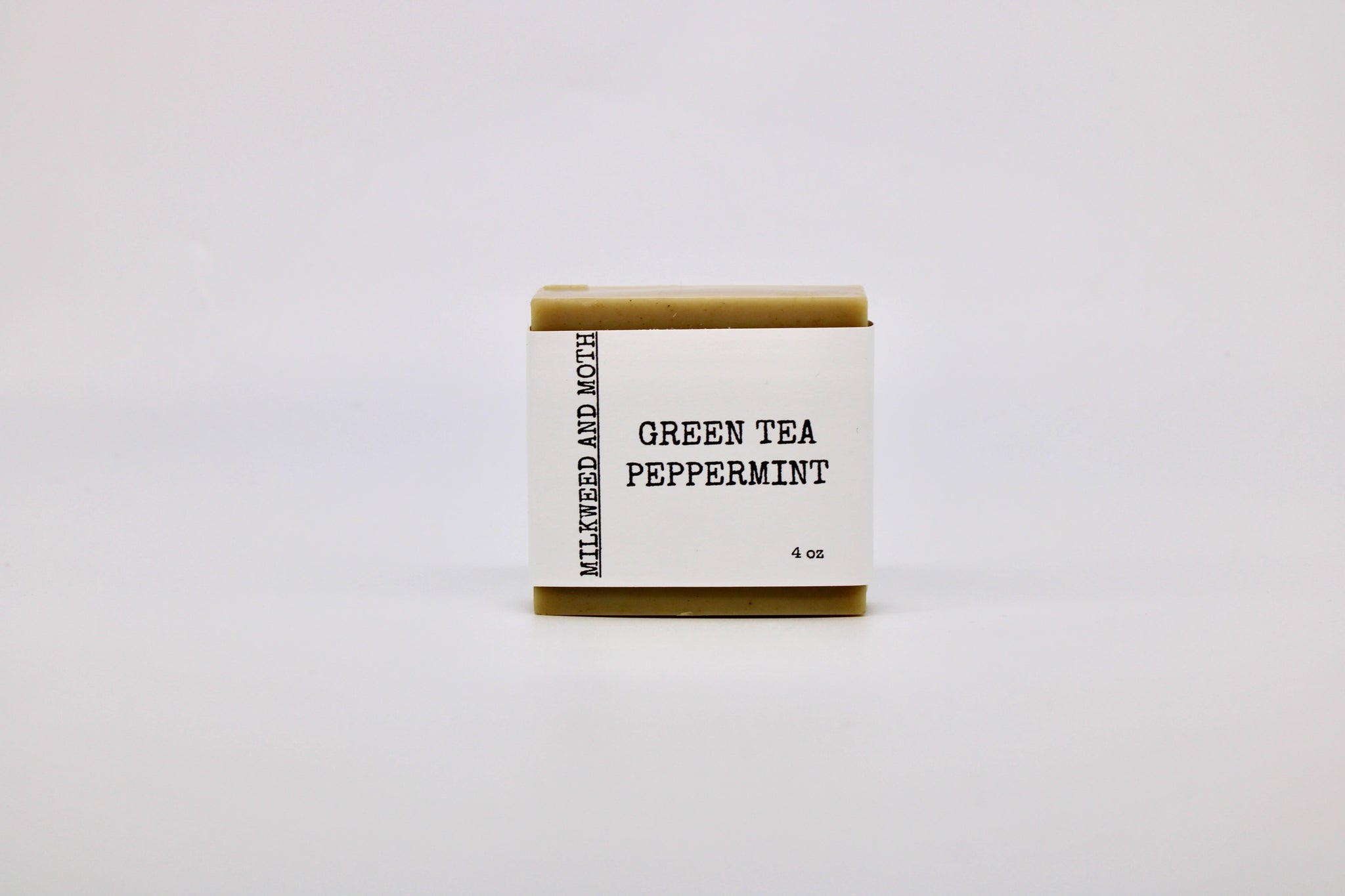 Ingredients: olive oil, coconut oil, shea butter, avocado oil, water, lye peppermint EO, green tea powder