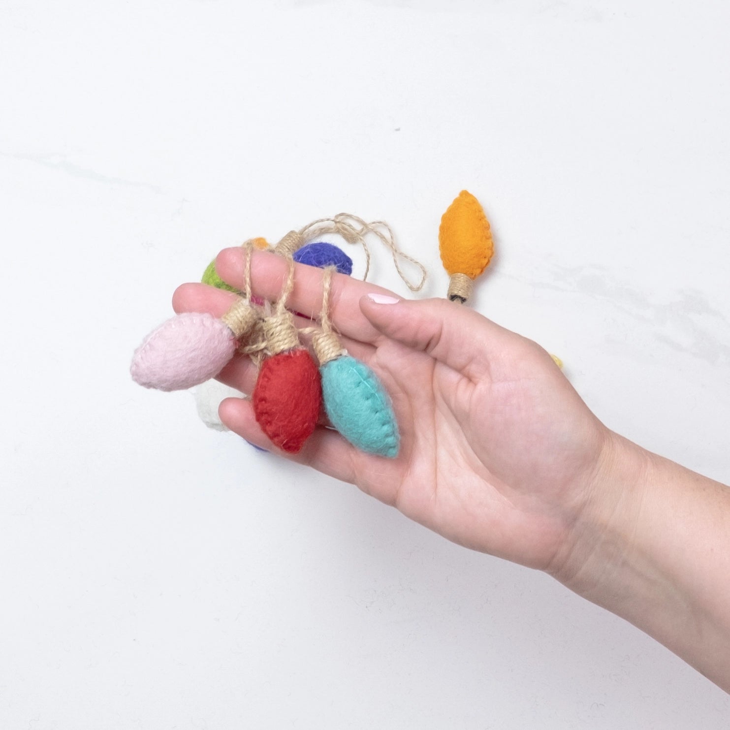 This vintage bulb inspired felted garland is so charming. Measures about 5.5 feet long. Ethically produced in Nepal by skilled artisans.
